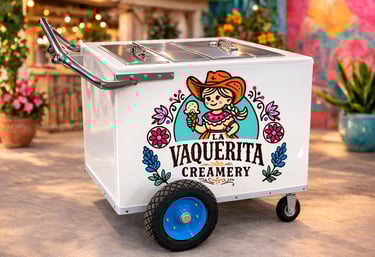 Rent the beautiful La Vaquerita paleta cart for your event! This option includes the cart setup so you can provide your own popsicles or desserts. Perfect for parties, photo displays, or DIY dessert stations.